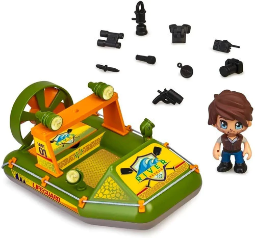 La lancha de rescate lleva a los exploradores de Pinypon Action Wild por los ríos de la selva en sus operaciones de rescate de animales. Incluye lancha, figura de explorador 7 cm Pinypon Action Wild y pequeños accesorios. Flota en el agua.